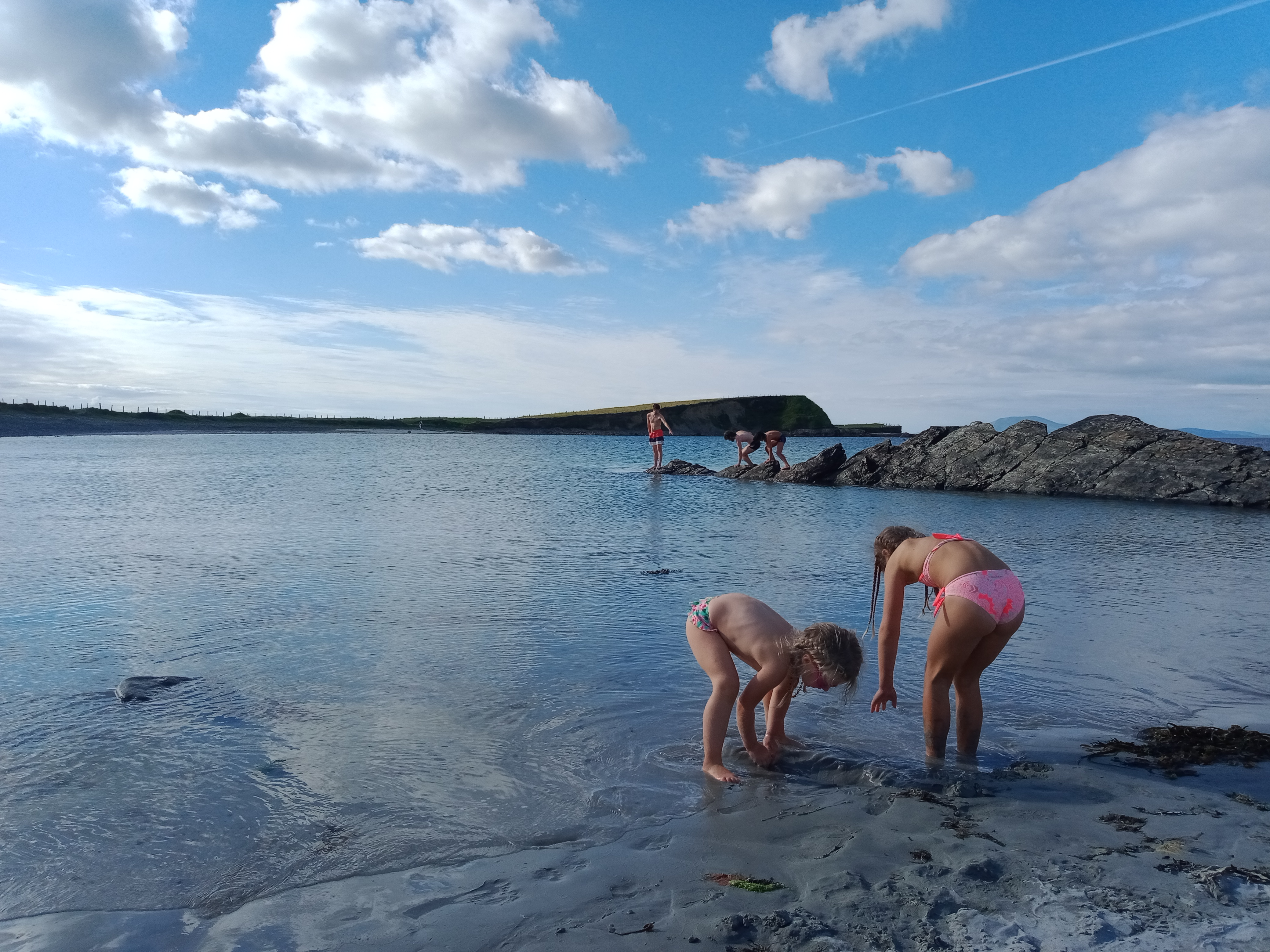 Puis nous avons suivi la côte en direction du sud. Paysages entre lacs et océan, soleil magnifique et notre record de température depuis notre arrivée : 21,5° !